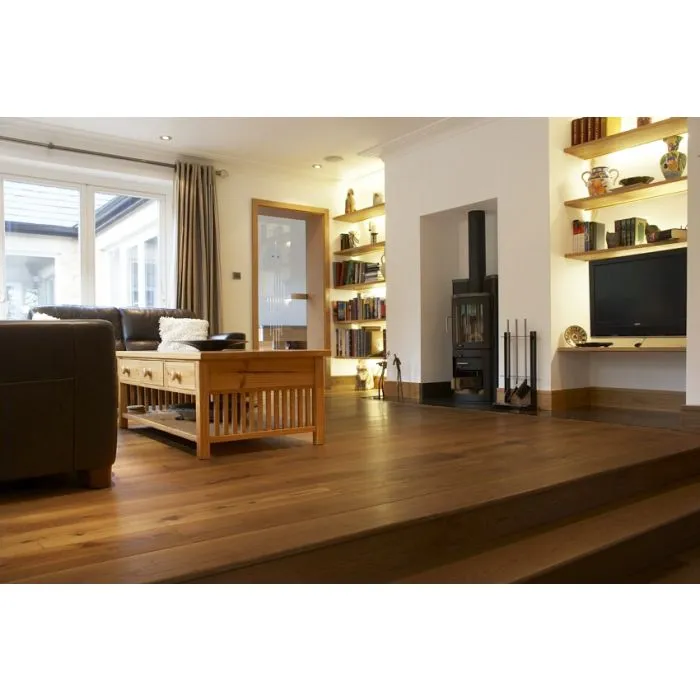 Fumed Classic Grade solid oak flooring is made to order from a single batch of natural timber, ensuring consistent board quality and uniform width within each batch. Narrow boards are typically around 140mm, while wide boards are usually close to 185mm, with slight natural variation. Boards are supplied in random lengths from approximately 1.5m to 2.5m for a natural, varied appearance. Each board is kiln-dried, pre-planed, and accurately machined with tongue-and-groove edges for a stable and durable installation, with fuming providing a natural darkened tone.
