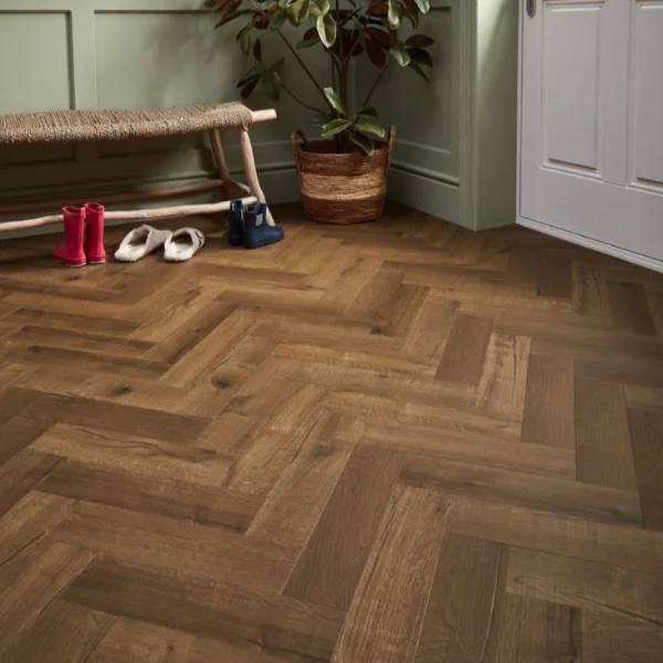 Introducing our Rich Tone Oak LVT. Designed with a realistic herringbone pattern, it captures the detailed knots and grain of natural wood, but is waterproof and built for everyday life. The planks are durable and easy to install, and can be mixed with other ranges for a custom look. For best results, we recommend using our solvent-free Asenso Adhesive Pro.