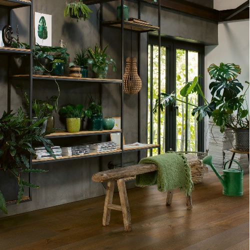 Water-resistant oak wood flooring with rich roasted tones, adding warmth and depth to any interior space. Extra matt finish and wide planks create a modern, elegant look suitable for high-traffic areas and kitchens. Advanced protective layers ensure long-lasting durability, moisture resistance, and easy maintenance.