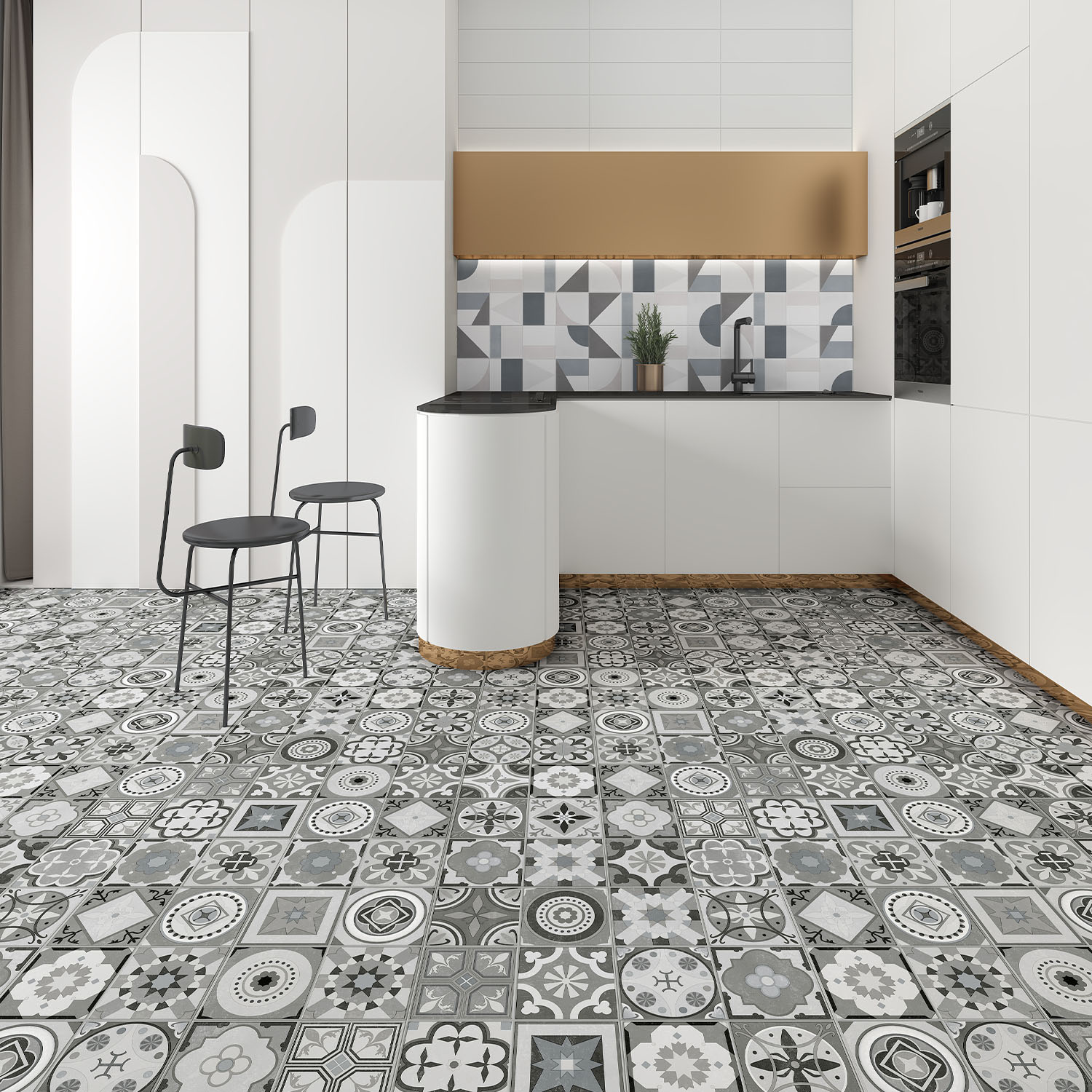 Valetta Mosaic SPC Flooring features intricate Victorian-inspired patterns, adding a bold and elegant statement to any interior. Its durable, waterproof SPC construction ensures long-lasting performance with easy maintenance. Quick Unilin click installation with integrated underlay provides comfort, stability, and effortless style.